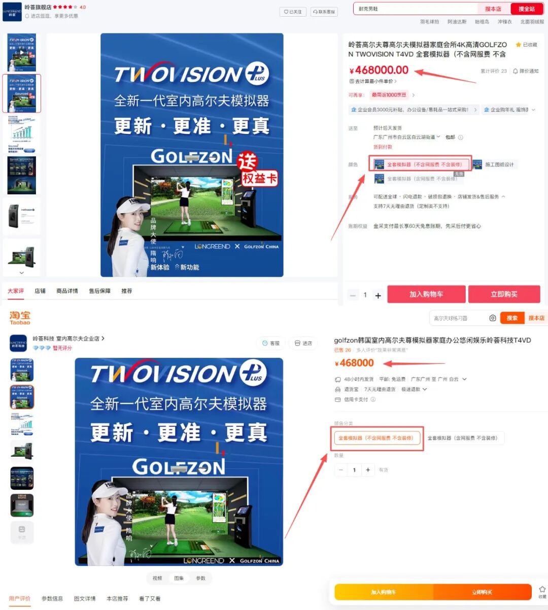 GOLFZON TwoVision Plus (¥48.8 万): 经典旗舰。双投影、双检测器配置,是高端会所的常客。