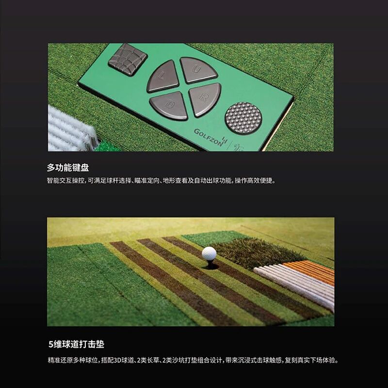 多材质击打垫与真实手感:NX RENEW配备由5种材质构成的可更换击打垫,包括球座、球道草、长草区和沙坑垫等 。球手可以在同一设备上练习开球、劈起、沙坑球等不同场景的击球,击打感受接近真实场地。这对专业教学和严肃练习尤为重要——教练可利用模拟器让学员反复练习困难的沙坑球或长草救球,俱乐部也可举办更丰富的模拟赛事科目。由此,球馆能够拓展教学课程和专业训练服务,创造额外收入。